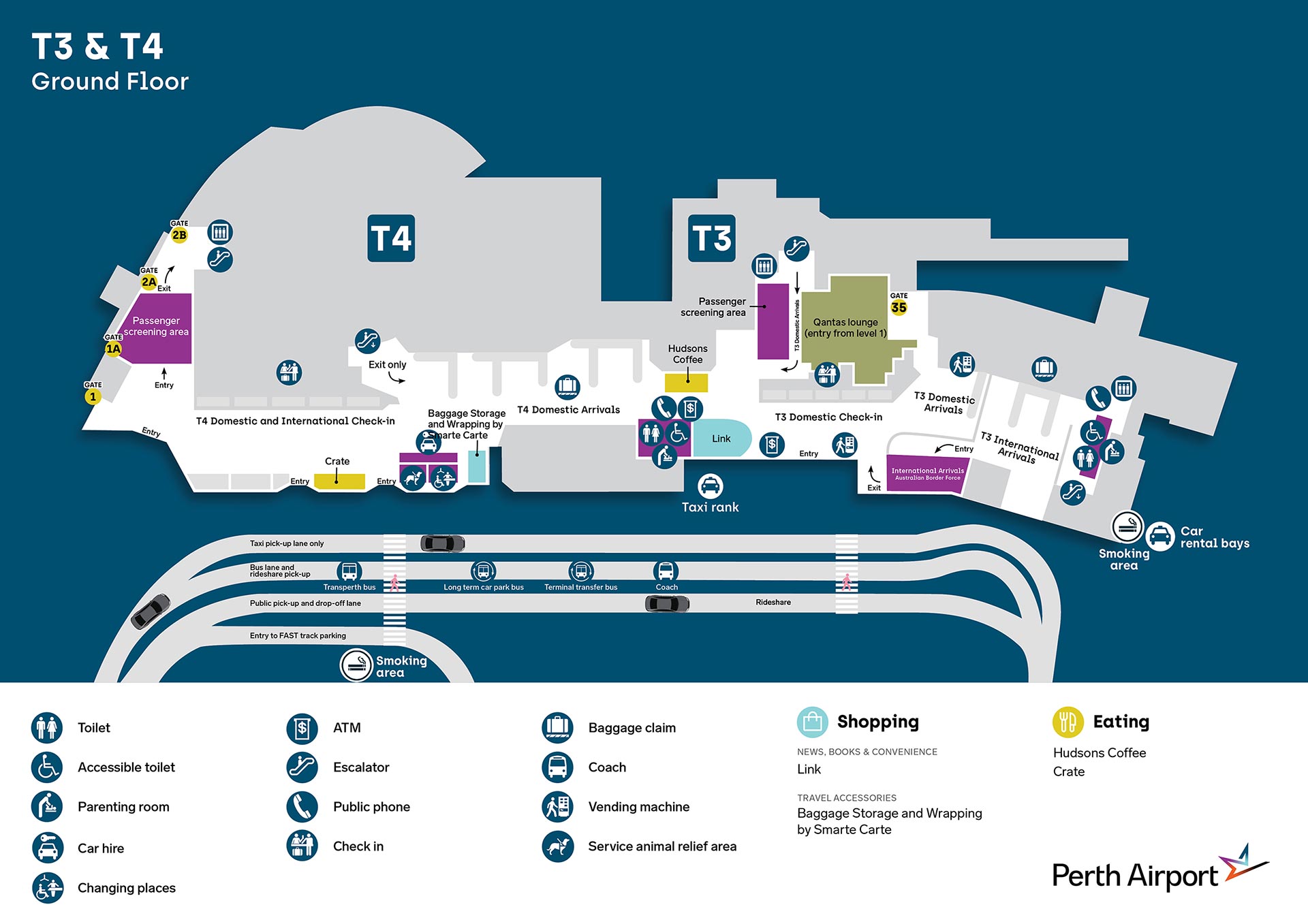 • T3 Domestic - along the walkway between the terminal and the Short Term Car Park